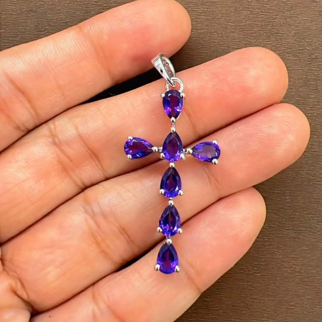 Categories: African Amethyst, African Amethyst Pendants, Collection, Cross Pendants, Gemstone Pendants without Cubic Zirconia, Gemstones, Silver Pendants