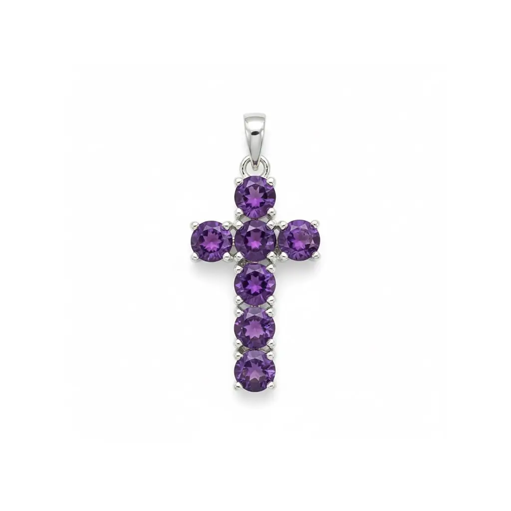 Be the first to review “Silver Pendant Cross design with 5mm round Amethyst Gemstone”