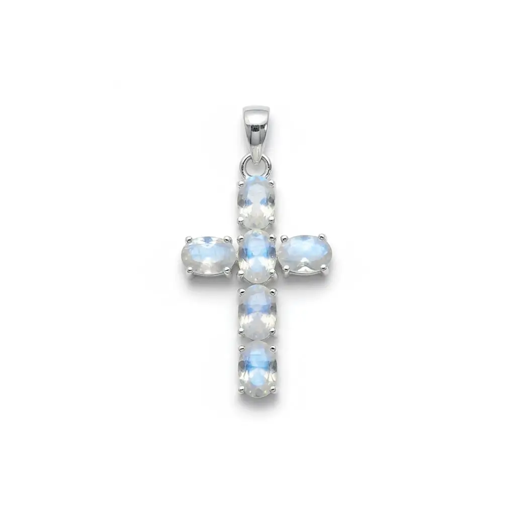 Be the first to review “Silver Pendant Cross design with 4x6mm oval Rainbow Moonstone Gemstone” Cancel reply