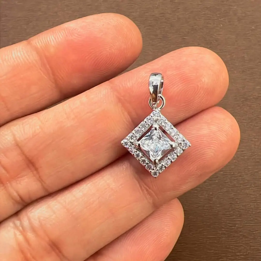 - Gemstone Details: 5mm square shaped Cubic Zirconia Cut (1pc) Gemstone in prong setting along with small round Cubic Zirconia (20pcs)