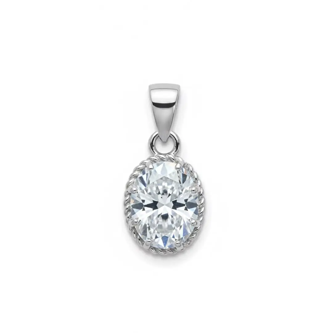 Silver Pendant 7x9mm oval Cubic Zirconia in Tar setting