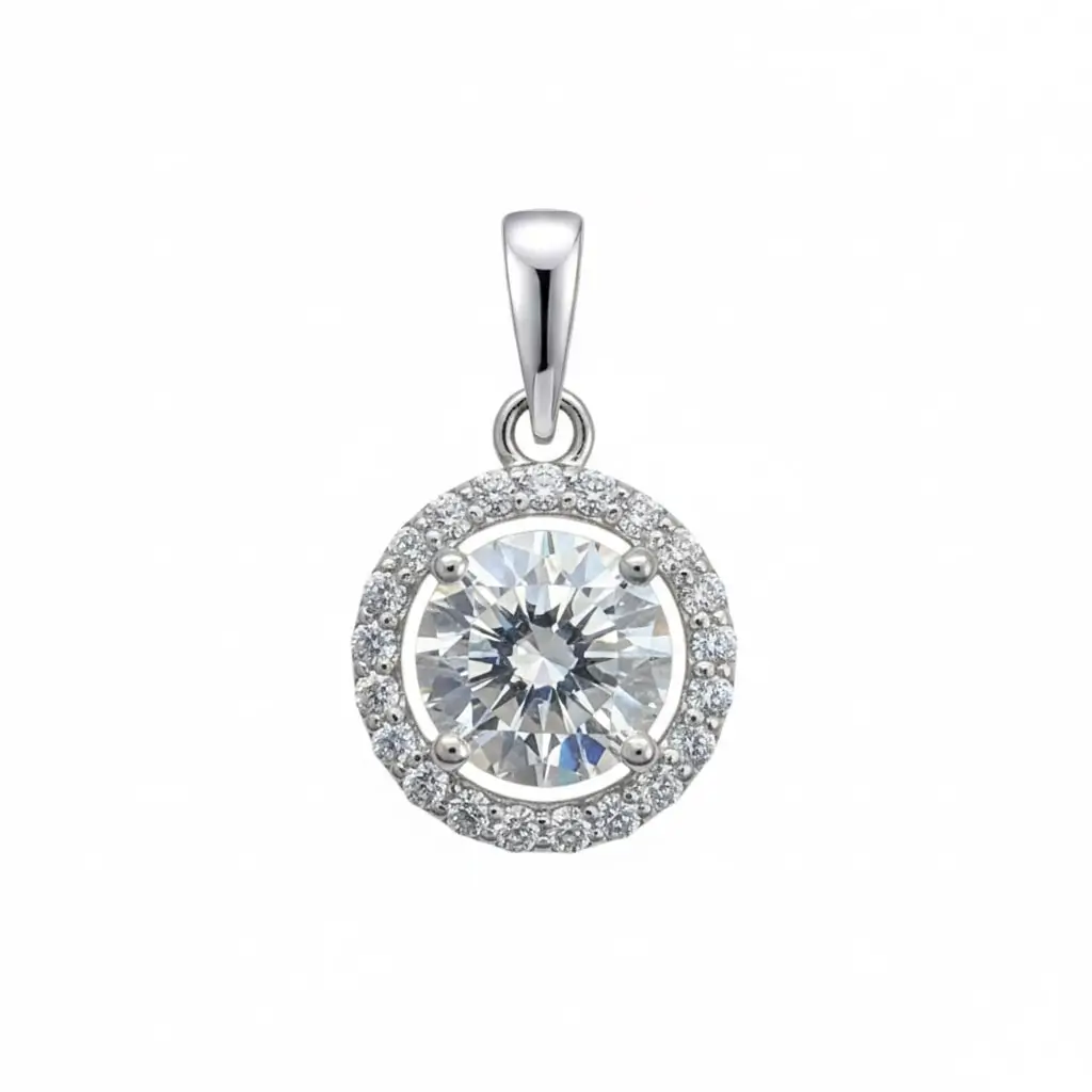 Silver Pendant cluster with 8mm round Cubic Zirconia and small round cubic zirconia