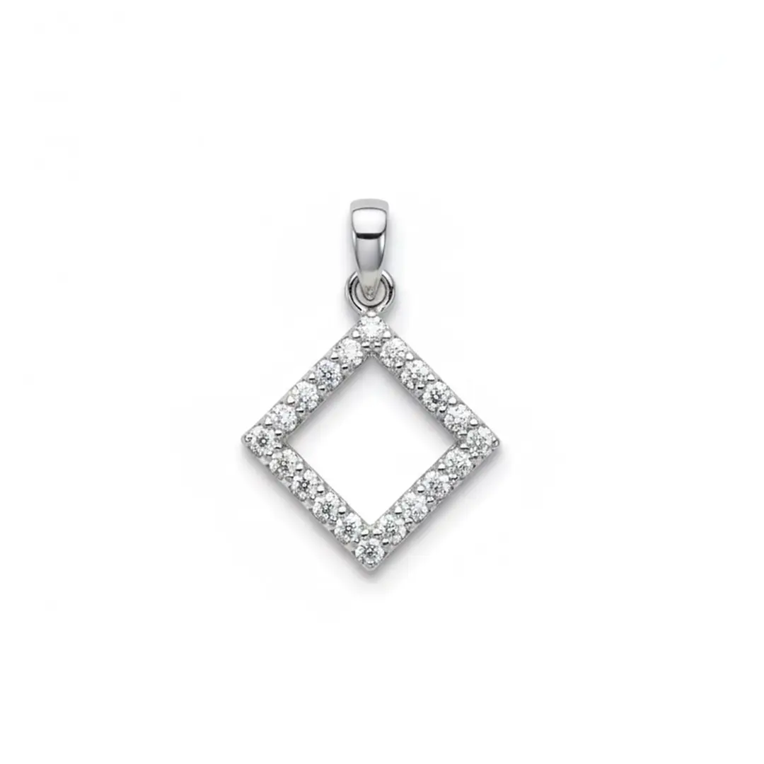 Silver Pendant hollow Square shaped with small round Cubic Zirconia