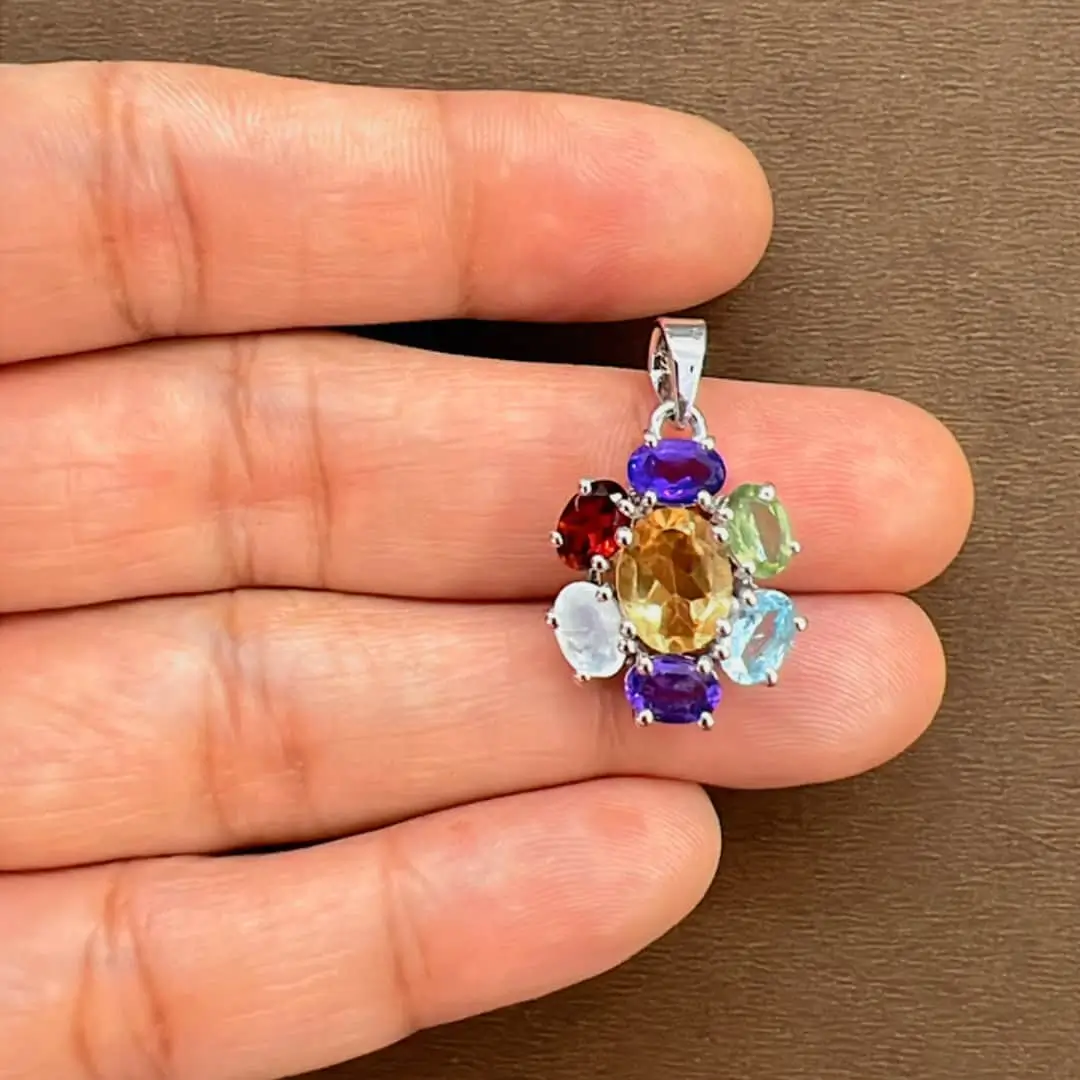 Silver Pendant with 7x9mm Citrine & 6x4mm oval Multi Gemstone