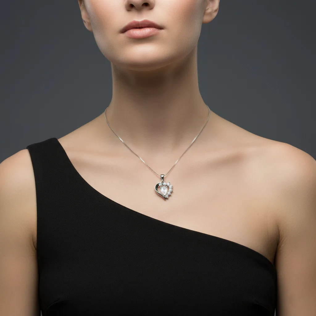 Be the first to review “Silver Pendant heart shaped with 5x7mm pear shaped Rainbow Moonstone Gemstone and small round Cubic Zirconia”
