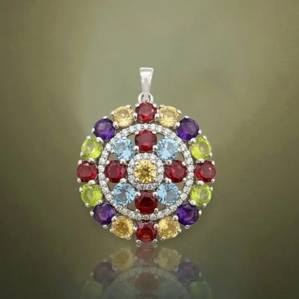 Categories: Gemstone pendants with Cubic Zirconia, Gemstones, Multi gemstone pendants with Cubic Zirconia, Multi Gemstones, Silver Pendants