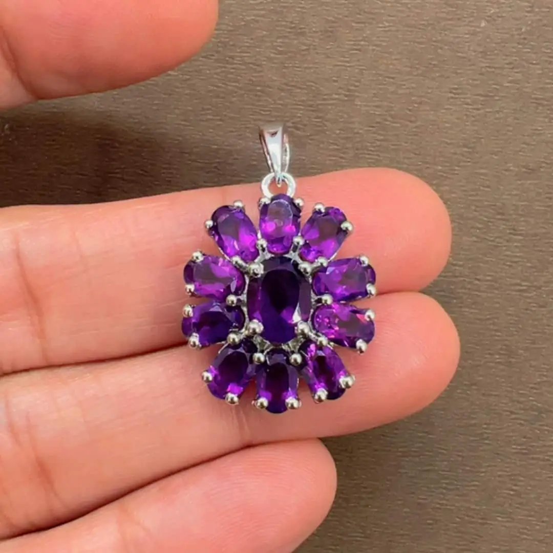 Be the first to review “Silver Pendant flower shaped with 6x8mm & 6x4mm Oval Amethyst Gemstone” Cancel reply