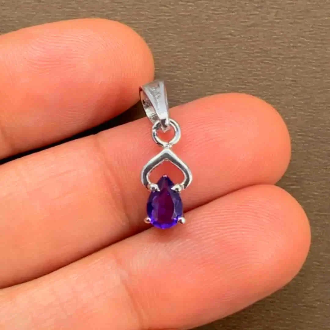Silver Pendant with 6×4 mm Pear Amethyst Gemstone