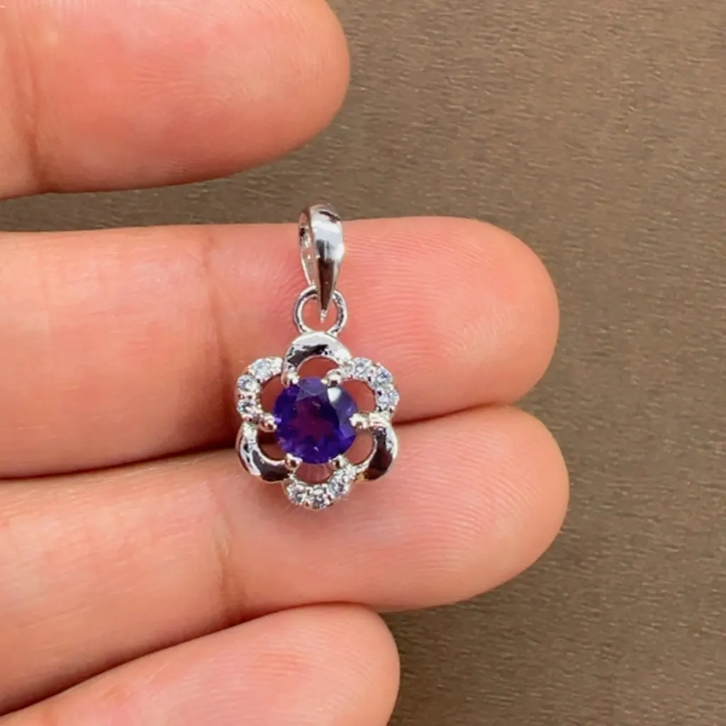 Be the first to review “Silver Pendant with 5mm round shaped Amethyst Gemstone and small round Cubic Zirconia” Cancel reply
