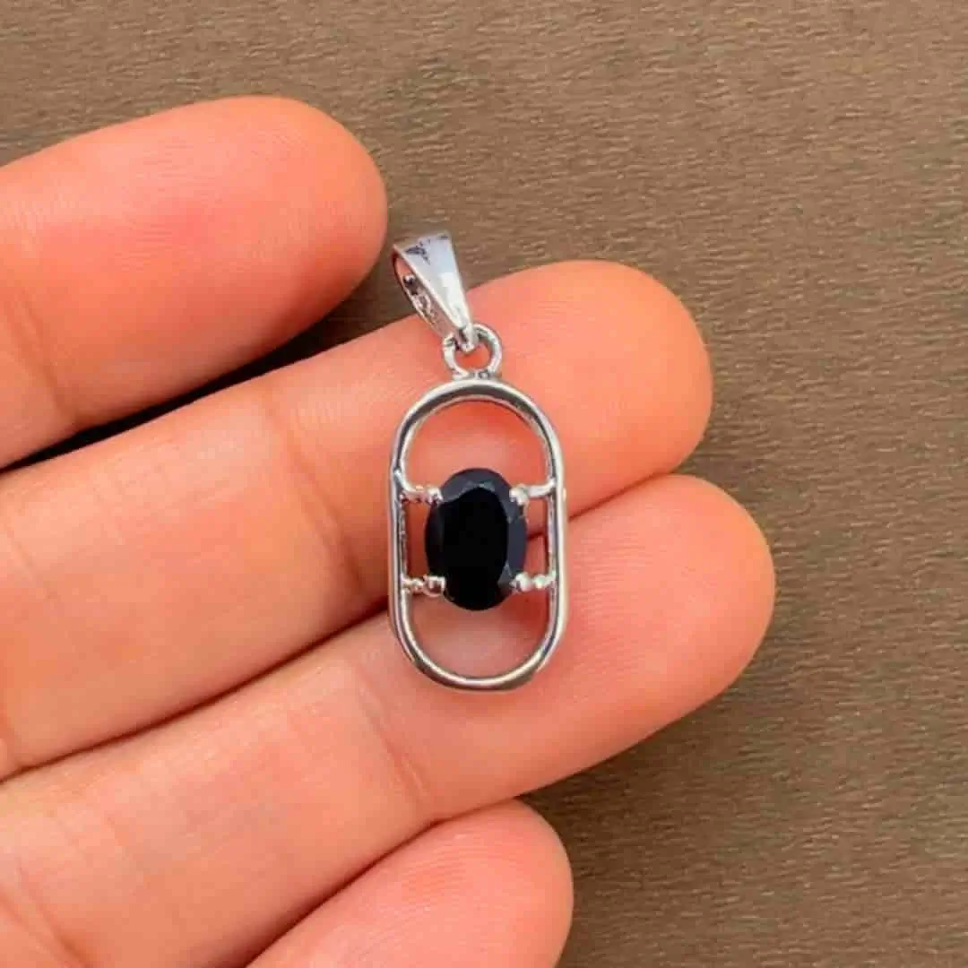 Silver Pendant with 5x7mm oval Black Onyx Gemstone