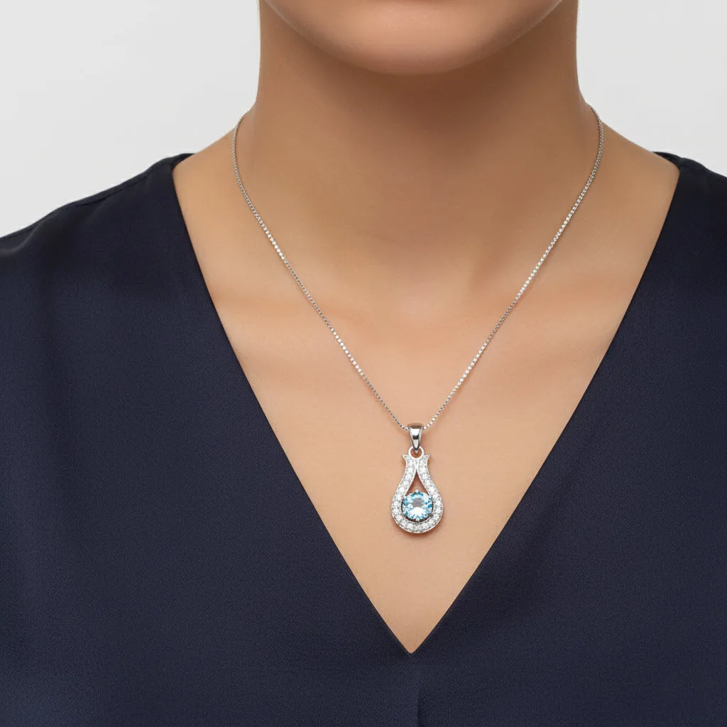 Be the first to review “Silver Pendant with 6mm round shaped Blue Topaz Gemstone and small round Cubic Zirconia” Cancel reply