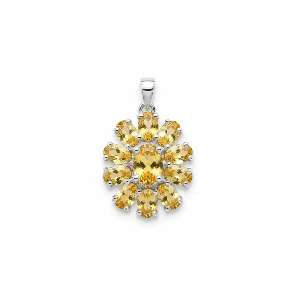 Silver Pendant flower shaped with 6x8mm & 6x4mm Oval Citrine Gemstone