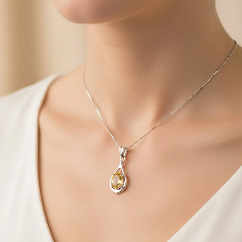 Be the first to review “Silver Pendant with 5x7mm oval Citrine Gemstone”