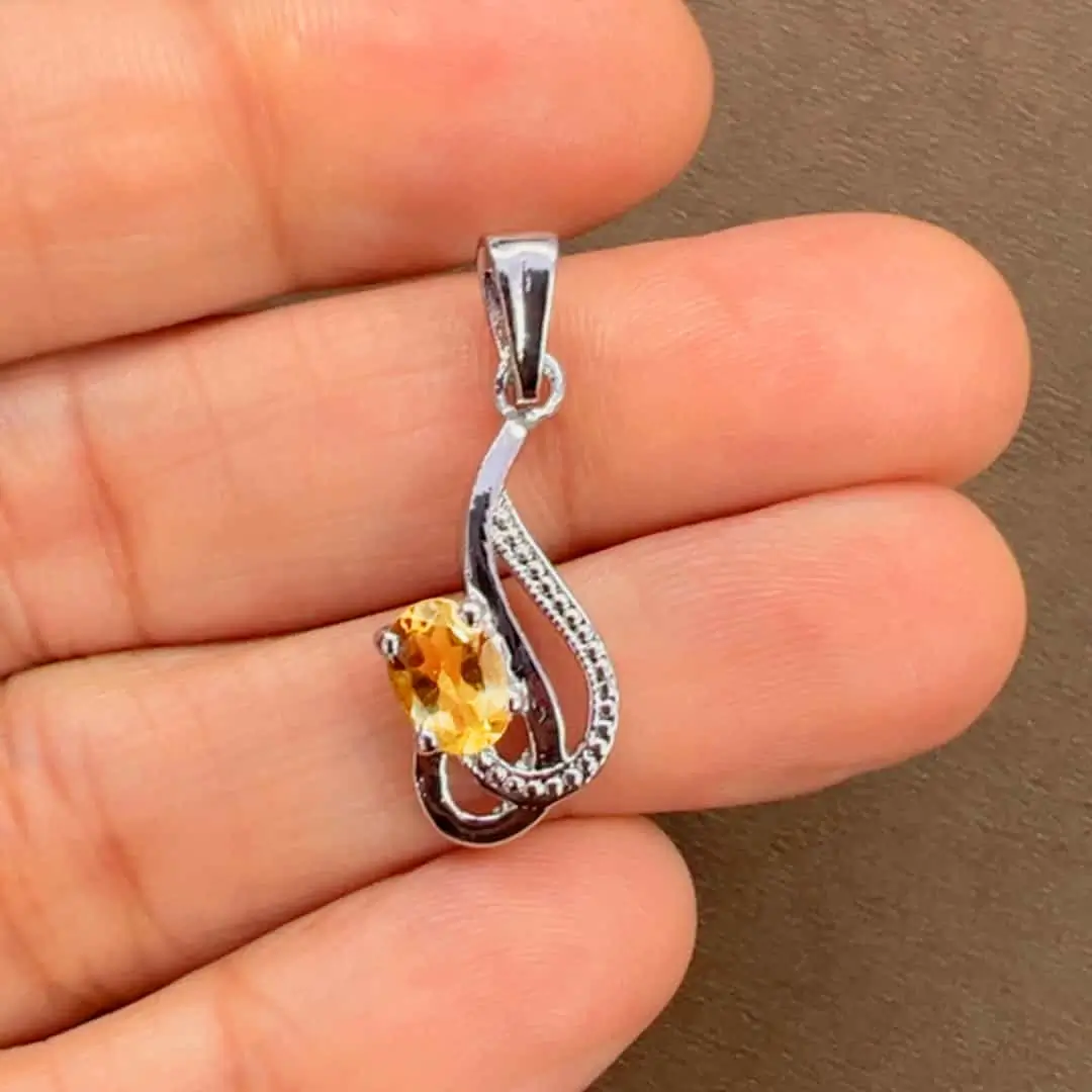 Silver Pendant with 5x7mm oval Citrine Gemstone