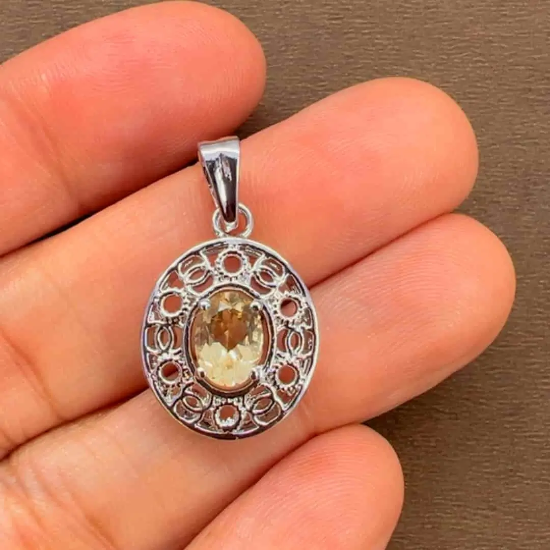 Silver Pendant with 5x7mm oval Citrine Gemstone