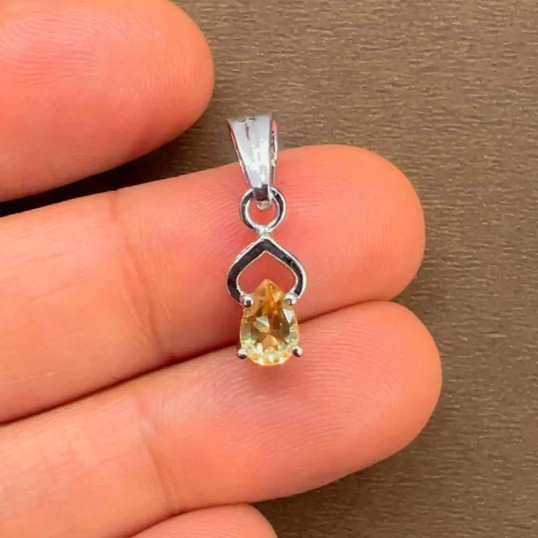 Silver Pendant with 6×4 mm Pear Citrine Gemstone