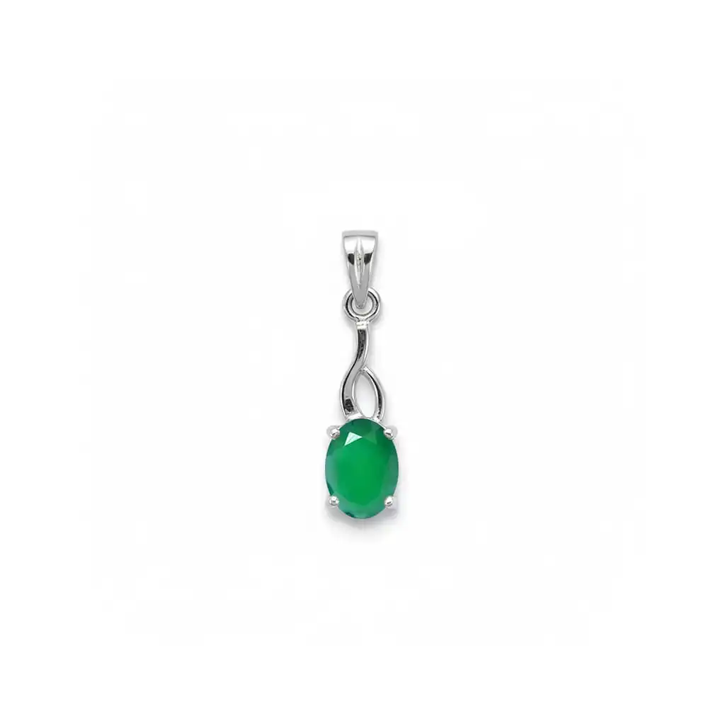 Silver Pendant with 5x7mm oval Green Onyx Gemstone