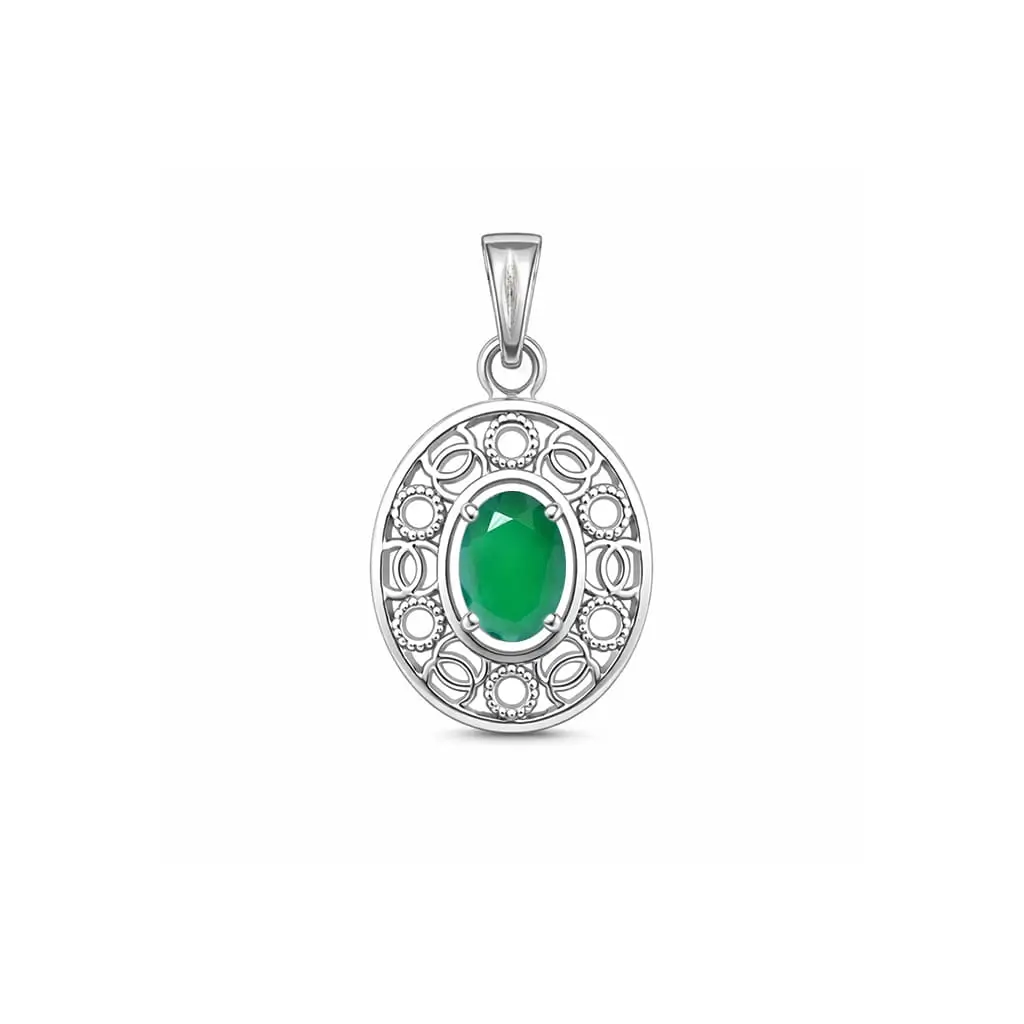Silver Pendant with 5x7mm oval Green Onyx Gemstone