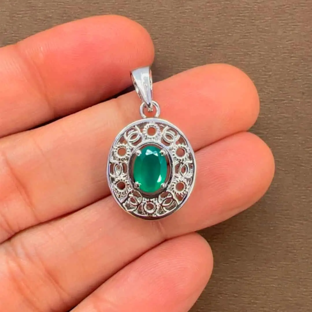 Be the first to review “Silver Pendant with 5x7mm oval Green Onyx Gemstone”