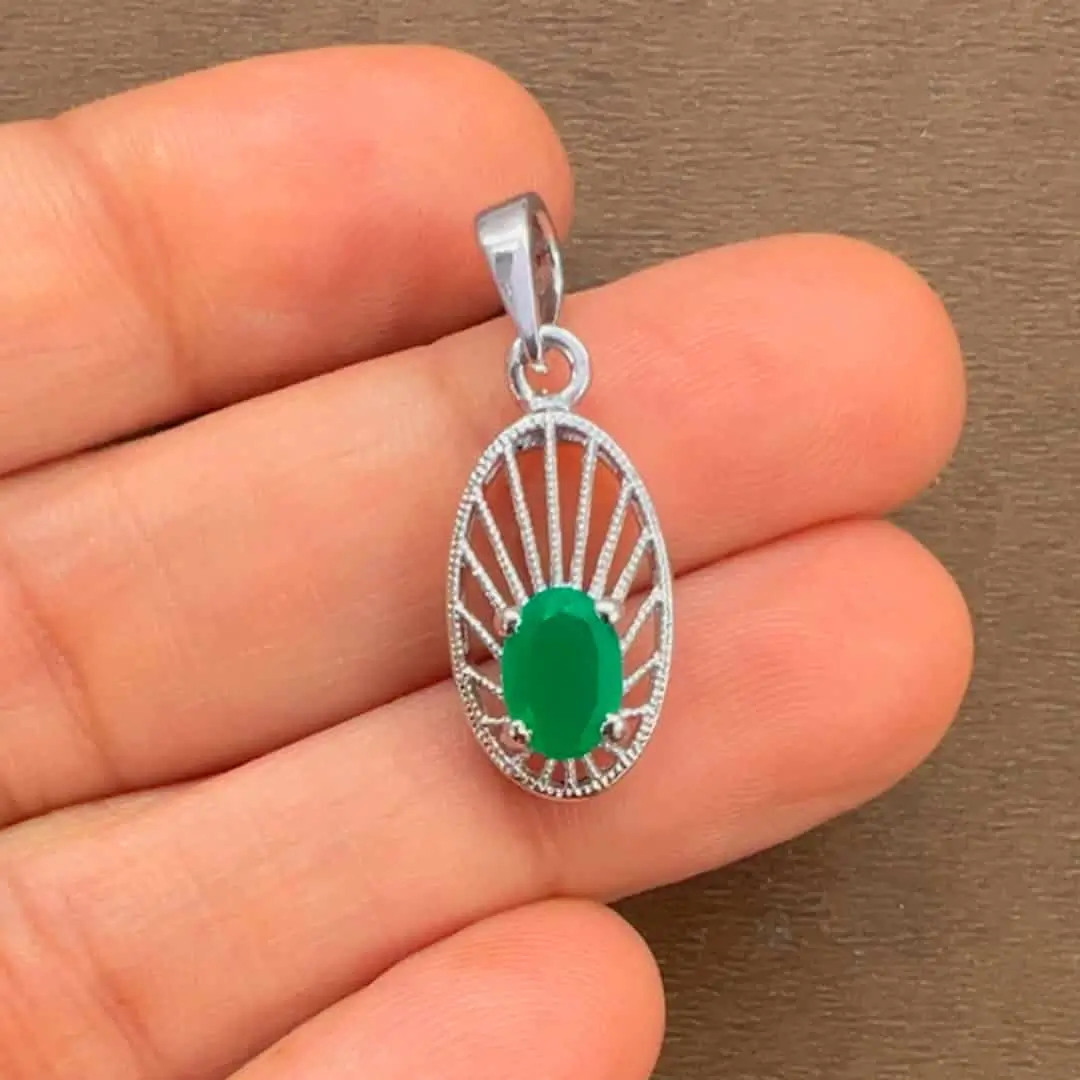 Be the first to review “Silver Pendant with 5x7mm oval Green Onyx Gemstone” Cancel reply