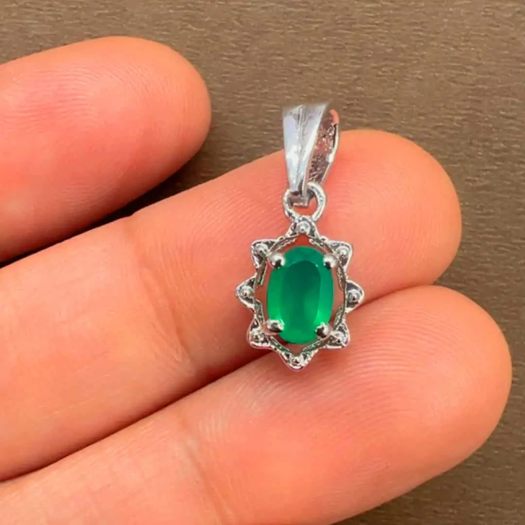 Be the first to review “Silver Pendant with 6×4 mm oval Green Onyx Gemstone” Cancel reply