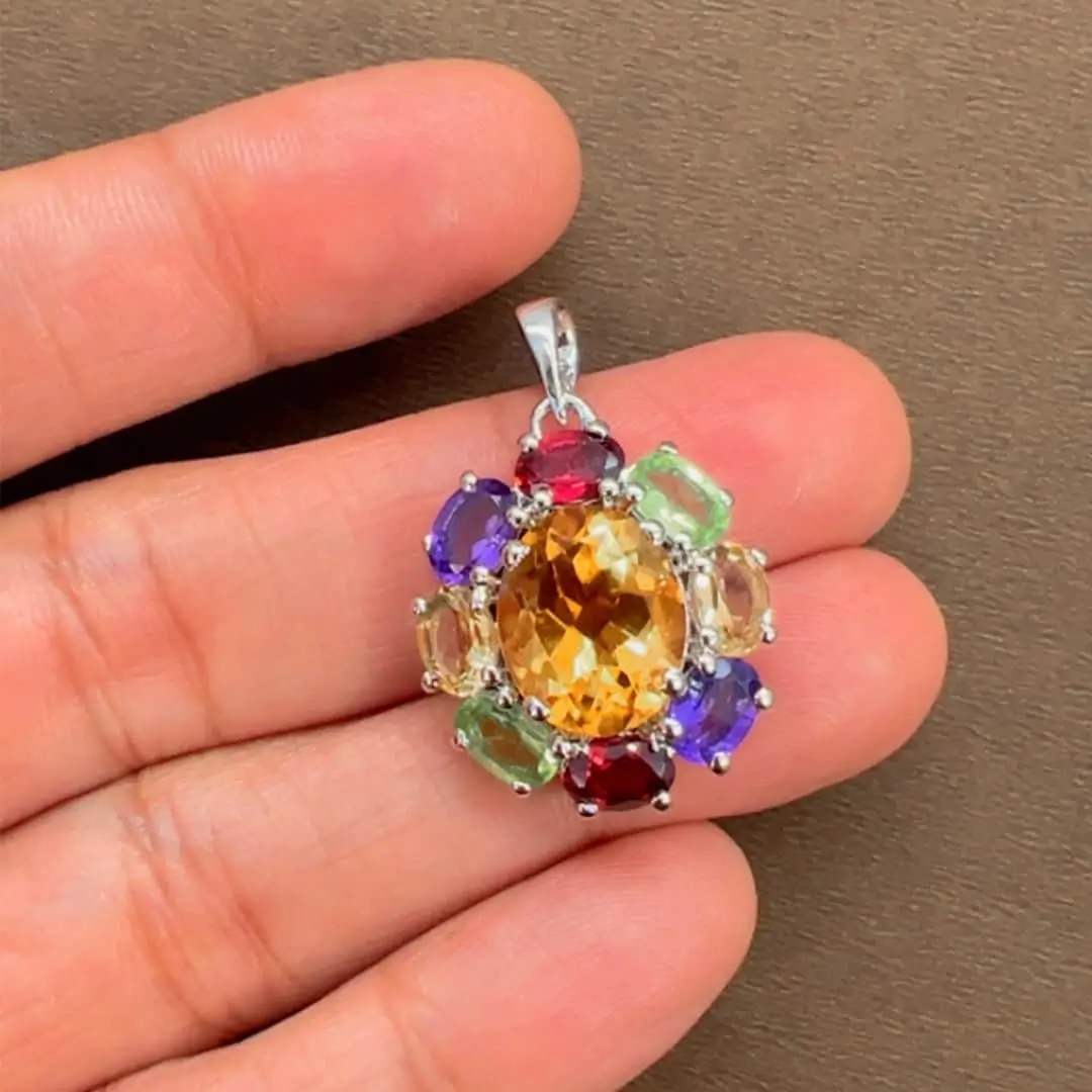 • Gemstone Details: 10×12 mm oval Citrine cut (1pc) and 6×4 mm oval Multi Gemstone (8pcs) (Garnet, Peridot, Citrine & Amethyst)