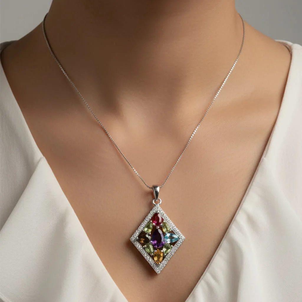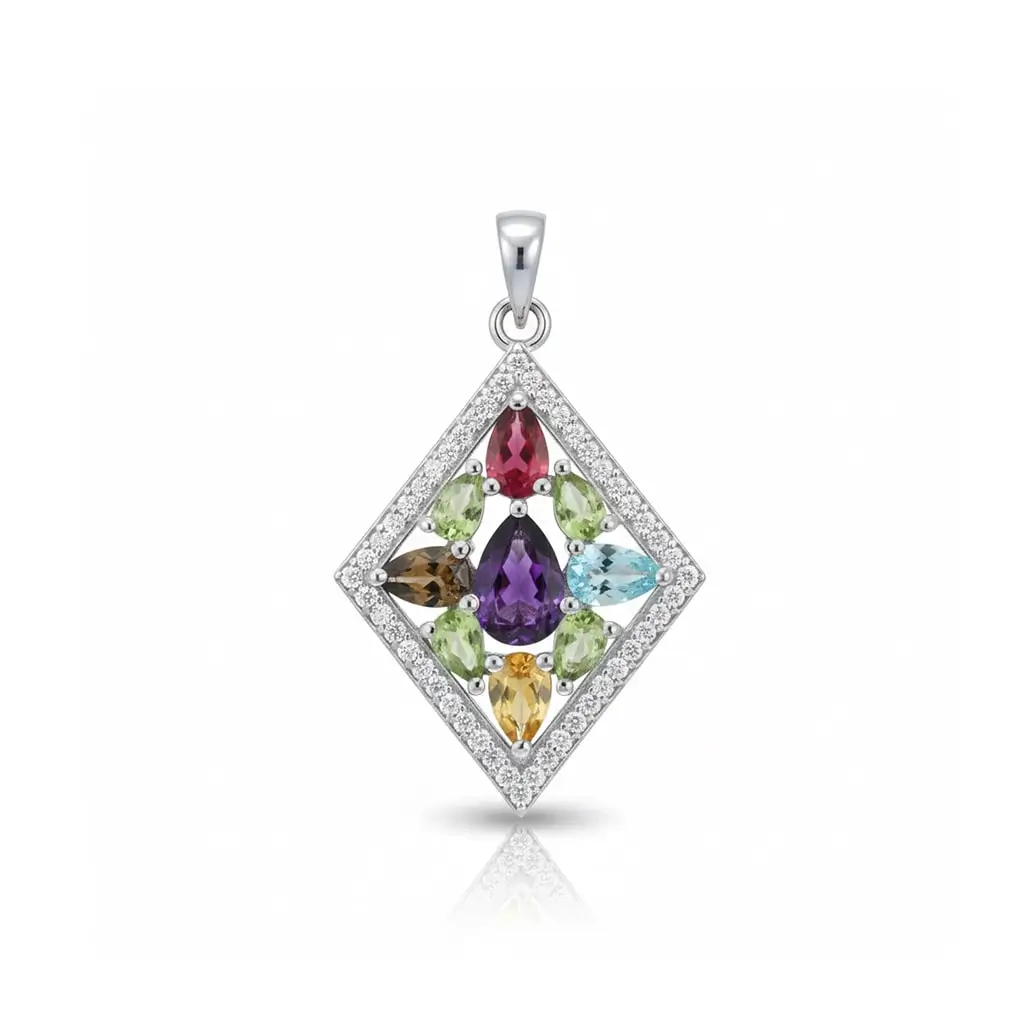 Categories: Gemstone pendants with Cubic Zirconia, Gemstones, Multi gemstone pendants with Cubic Zirconia, Multi Gemstones, Silver Pendants