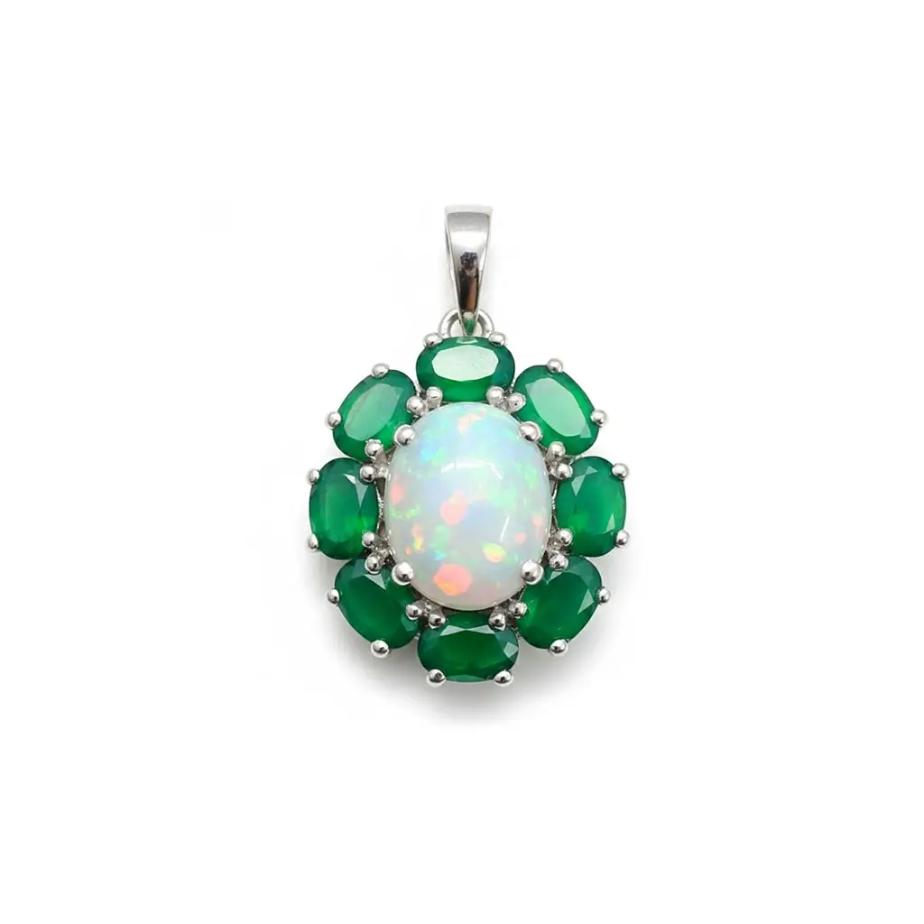Silver Pendant with 10x12mm Opal & 6x4mm oval Green Onyx Gemstone