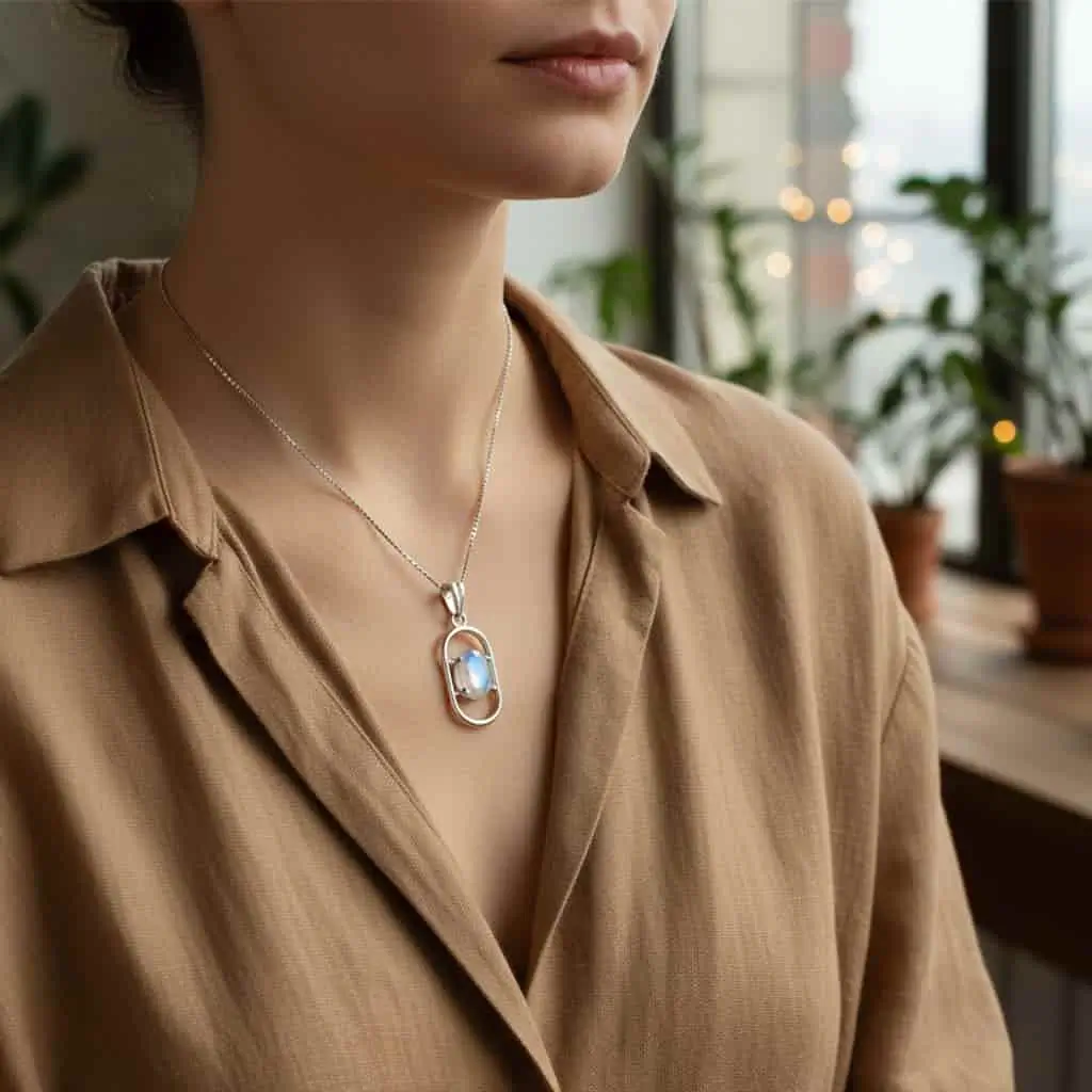 Be the first to review “Silver Pendant with 5x7mm oval Rainbow Moonstone Gemstone” Cancel reply