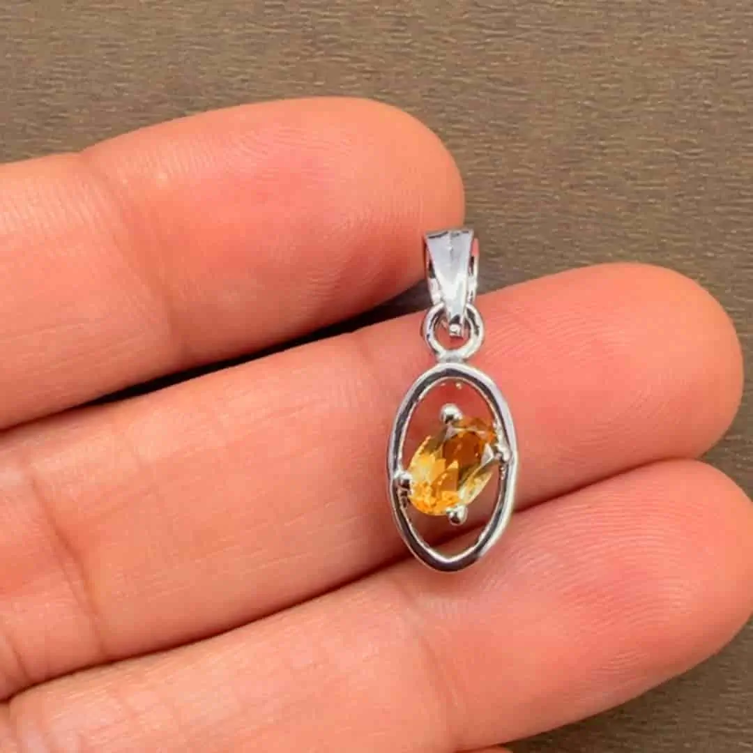 Silver Pendant with 6×4 mm oval Citrine Gemstone