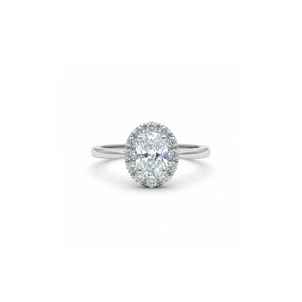 - Gemstone Details: 5×7 mm ovalshaped Cubic Zirconia Cut (1pc) Gemstone in prong setting along with small round Cubic Zirconia (12 pcs)