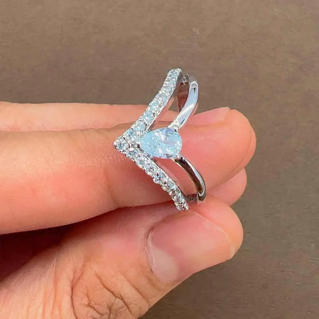 • Gemstone Details: 4×6 mm pear shaped Cubic Zirconia Cut (1pc) Gemstone in prong setting along with small round Cubic Zirconia (25pcs)