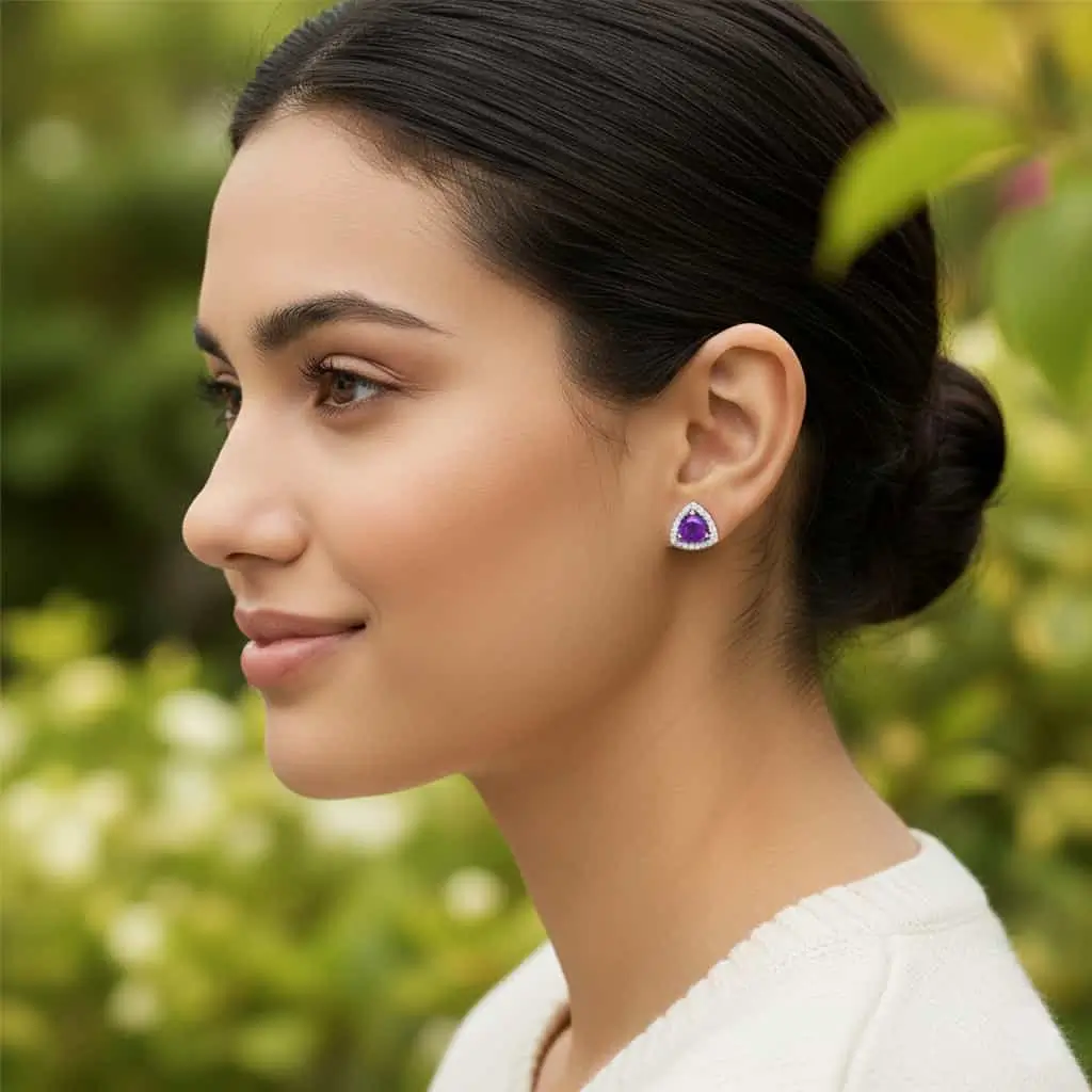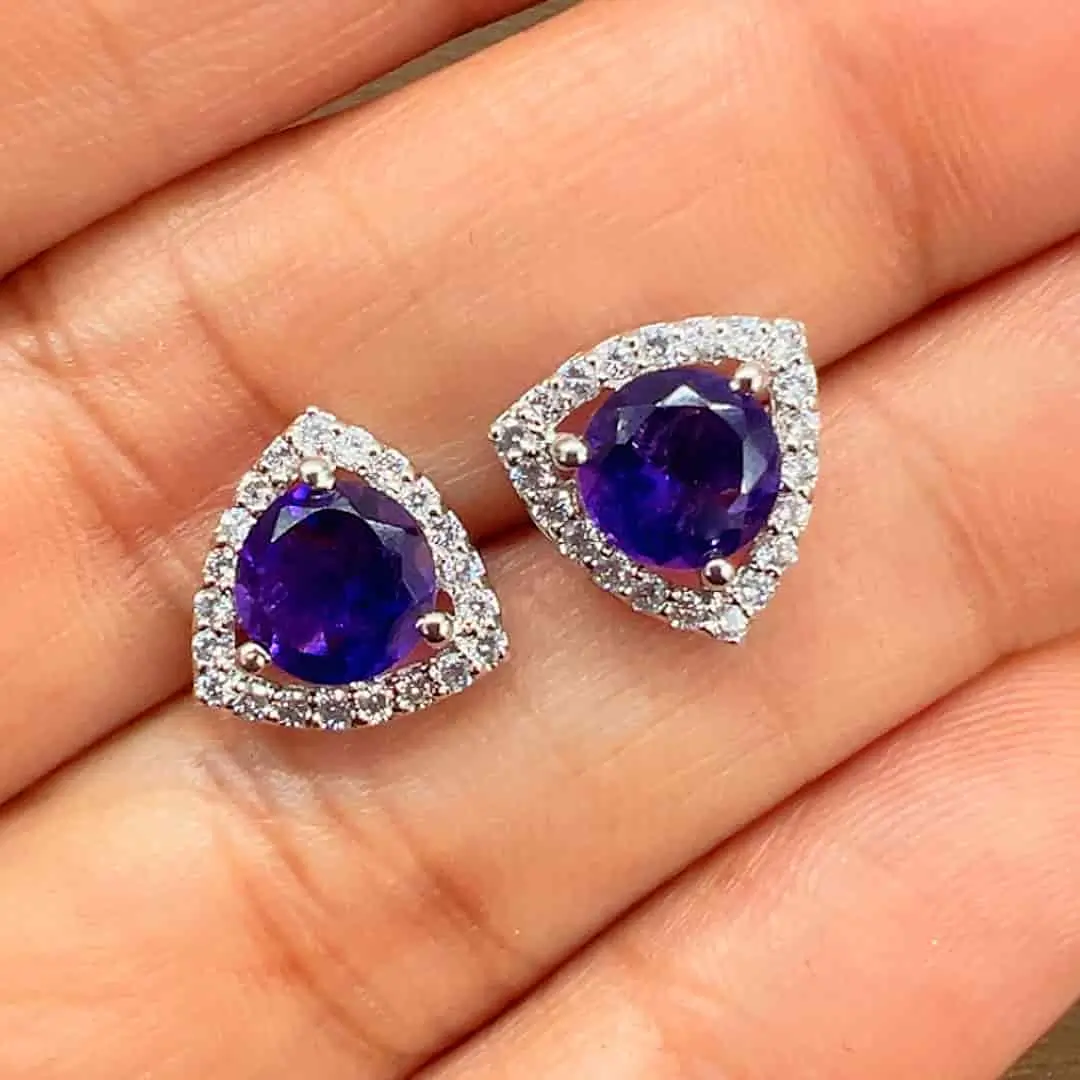 Be the first to review “Silver Studs Triangular shaped with 6mm round shaped Amethyst Gemstone and Cubic Zirconia” Cancel reply