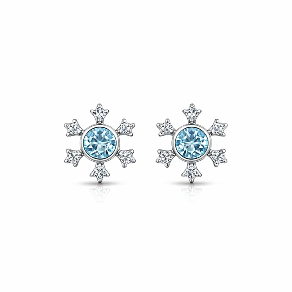Silver Studs snowflake design with 5mm round Blue Topaz Gemstone and Cubic Zirconia