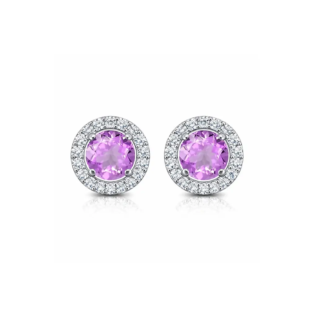 Silver Studs Cluster with 6mm round shaped Brazilian Amethyst Gemstone and Cubic Zirconia