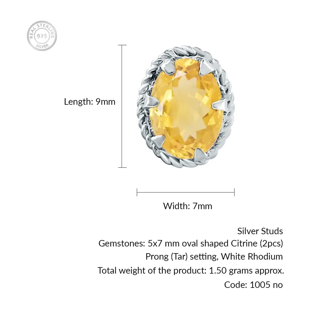 Tar Silver Studs with 5x7mm Oval Citrine Gemstone