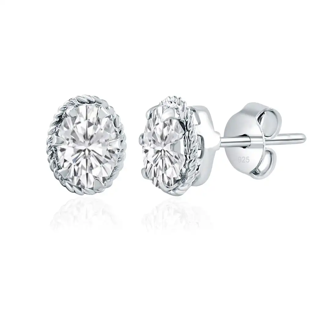 Tar Silver Studs with 5x7mm Oval Cubic Zirconia Gemstone