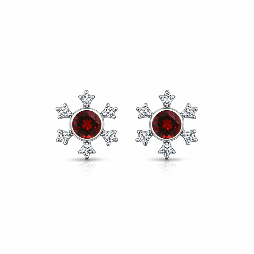 Be the first to review “Silver Studs snowflake design with 5mm round Garnet Gemstone and Cubic Zirconia” Cancel reply