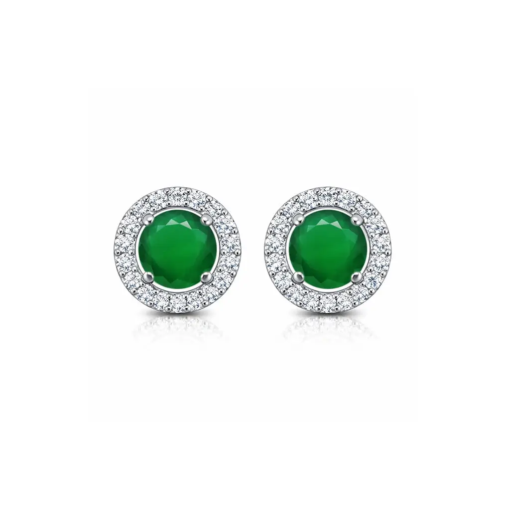 Silver Studs Cluster with 6mm round shaped Green Onyx Gemstone and Cubic Zirconia