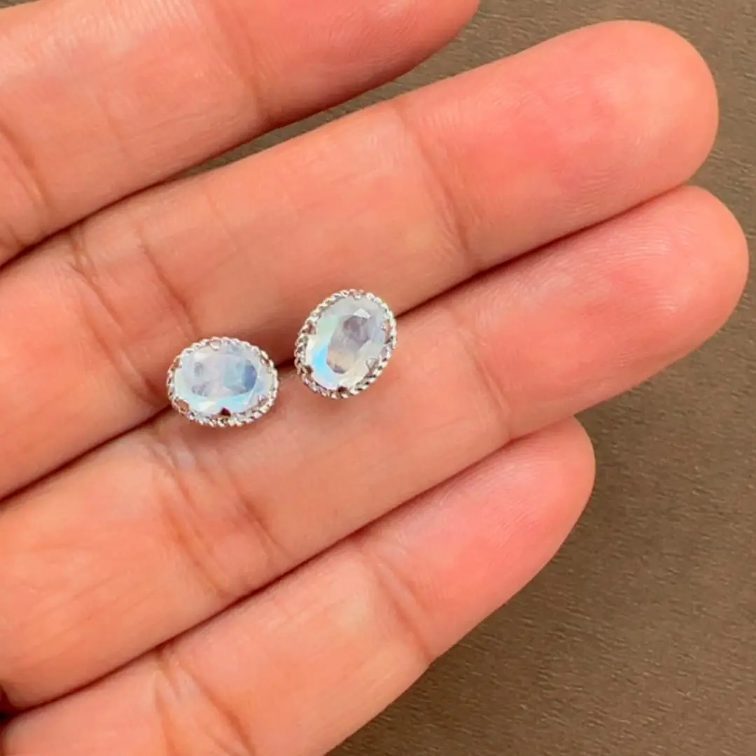 These beautiful light weight gemstone studs with Rainbow Moonstone is Dazzling and enchanting, these are a celebration of natural elegance. Radiating an ethereal glow, these studs are not just accessories but symbols of grace and enchantment, adding a touch of magic to every look they adorn. Rainbow moonstone is believed to stimulate creativity and inspiration. It is thought to awaken the imagination, enhance artistic expression, and foster innovation. This gemstone is often used by artists, writers, and creative individuals seeking to tap into their creative potential.