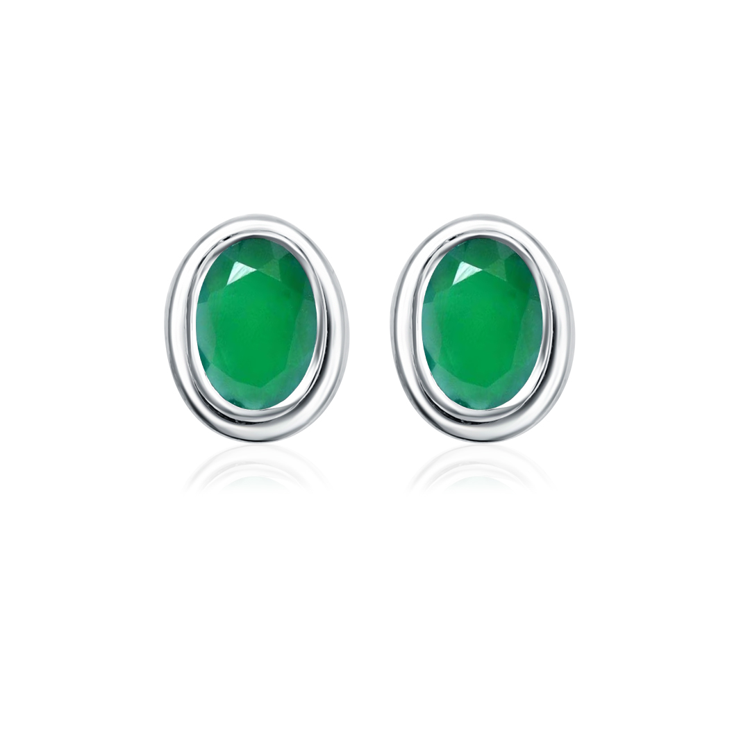 Silver Studs(plain) with 5x7mm Oval Green Onyx Gemstone in Band Setting